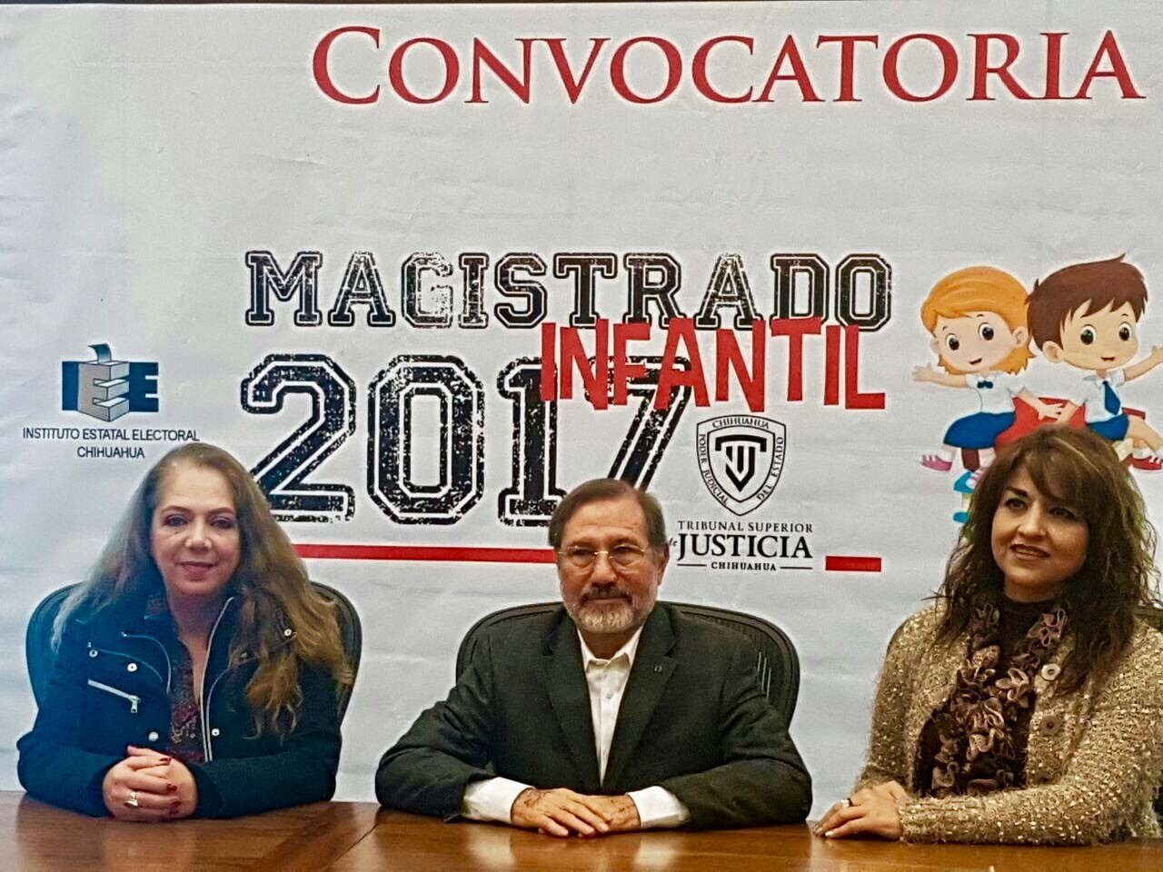 El Magistrado Presidente del Tribunal Superior de Justicia, Julio César Jiménez Castro, y la Consejera Electoral, Julieta Fuentes Chávez, presentaron la convocatoria Magistrado Infantil por un día 2017.
