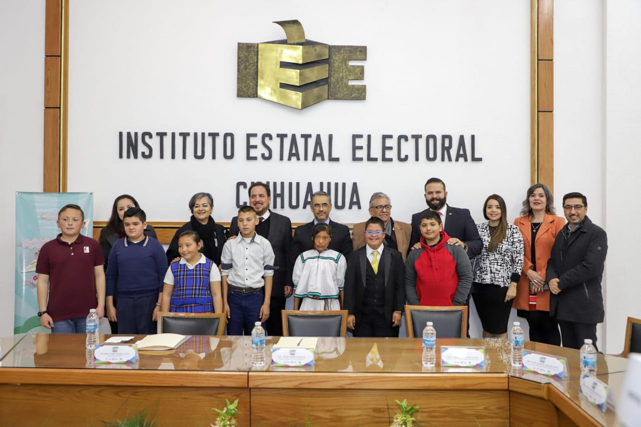 Chihuahua, Chih. - En una ceremonia cálida y la Sala de Sesiones del Instituto Estatal Electoral (IEE) llena de niñas y niños, se realizó el día de hoy el procedimiento de insaculación infantil, del cual salió sorteada la niña Tania Estefanía Martínez Tapia, del municipio de Chihuahua, como gobernadora infantil 2019. Además, se seleccionaron 18 integrantes del Gabinete Estatal Infantil, y tres suplentes. Las alumnas y los alumnos insaculados ostentarán sus respectivos cargos públicos en el marco de los festejos del próximo Día del Niño.