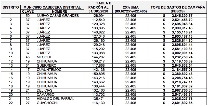 Se determinan los topes de gastos de campaña para esta Elección 2021