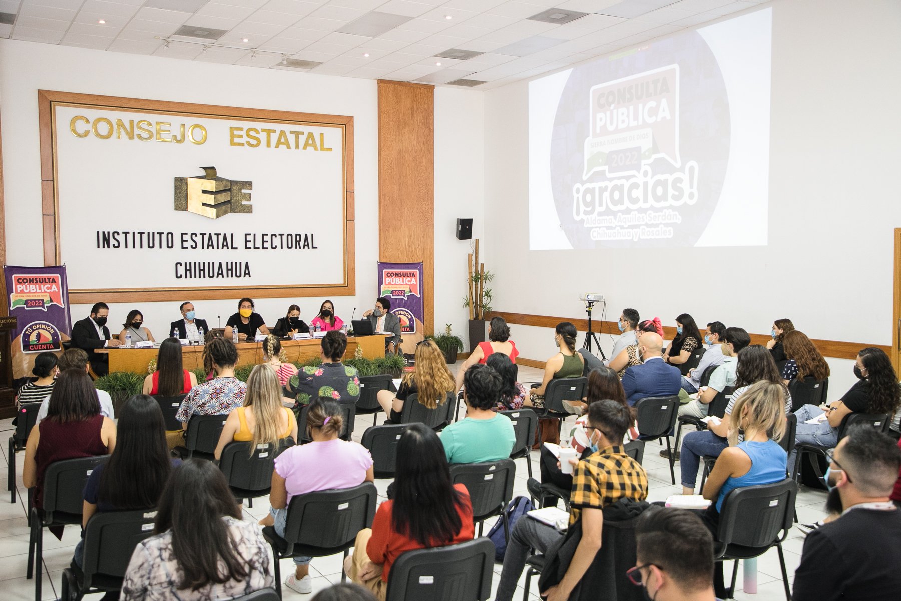 El evento realizado de manera presencial en la Sala de Sesiones del Consejo Estatal Instituto Estatal Electoral de Chihuahua (IEE) y compartido en las redes sociales del órgano local, contó con la participación de Luis Andrés Rivera Levario, representante Salvemos los Cerros de Chihuahua; Ireyli Zuluamy Iracheta Lara, del área de investigación y políticas públicas de SIPINNA; Diana González López, docente de la Facultad de Zootecnia, UACH; Fryda Libertad Licano Ramírez, Víctor Yuri Zapata Leos y Ricardo Zenteno Fernández, consejera y consejeros electorales del IEE; y como moderador, el consejero Gerardo Macías Rodríguez.