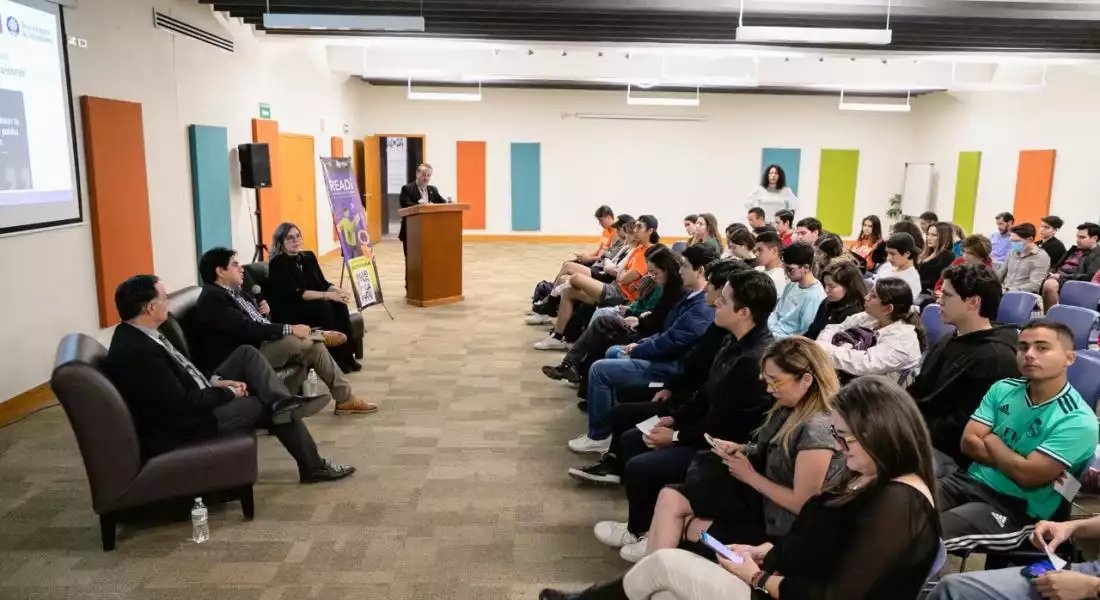 Chihuahua, Chih.— Georgina Ávila Silva, Víctor Yuri Zapata Leos y Ricardo Zenteno Fernández, consejera y consejeros electorales del Instituto Estatal Electoral de Chihuahua (IEE) dialogaron con jóvenes del Tec de Monterrey campus Chihuahua sobre democracia y participación ciudadana.