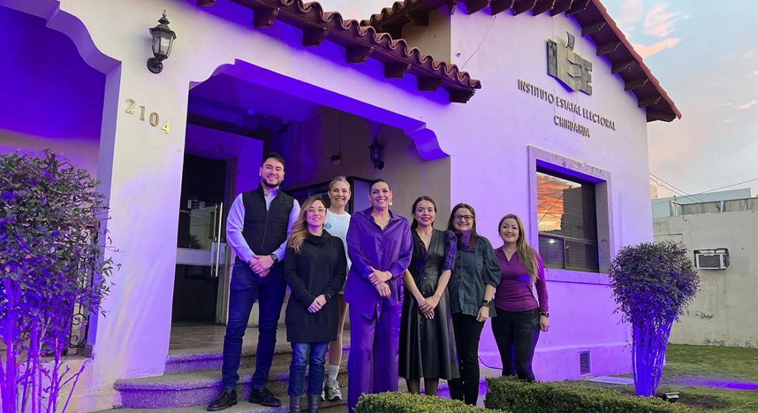 Chihuahua, Chih.— En el marco del Día Internacional de las Mujeres, que se conmemora el 8 de marzo (8M), el Instituto Estatal Electoral de Chihuahua (IEE) iluminó la fachada de su edificio de morado, color representativo de la lucha feminista.
